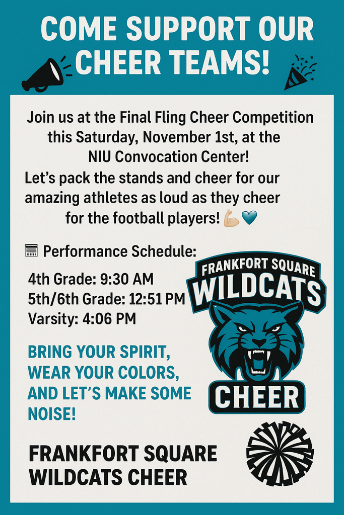 Come support the Cheer Teams Saturday, November 1st at the NIU Convention Center